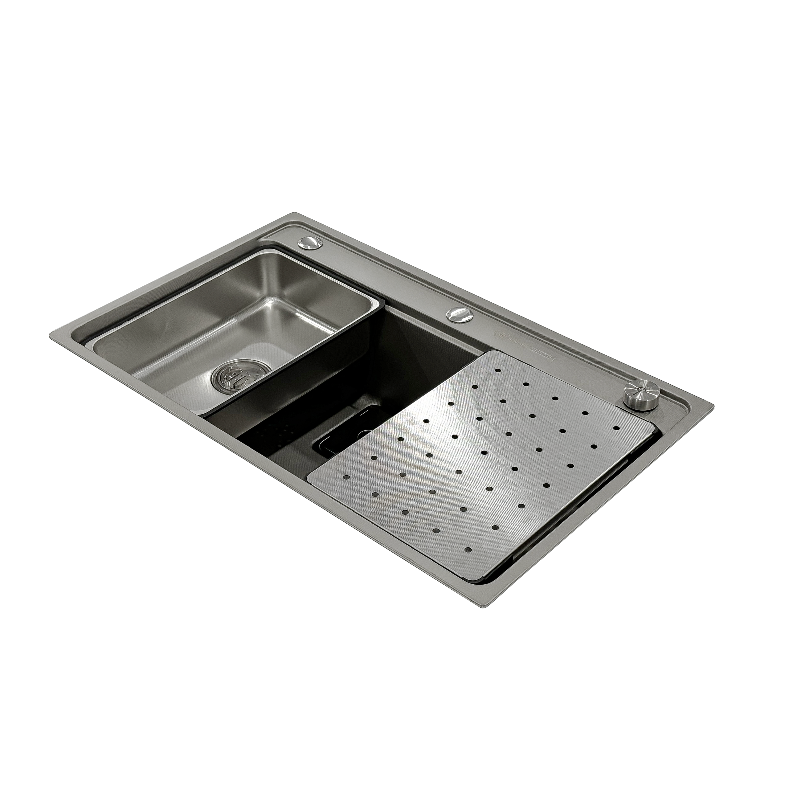 Chậu rửa bát 1 ngăn inox 304 cao cấp – SC7547 | Thuộc dòng sản phẩm chậu rửa bát lắp âm 1 ngăn cao cấp của Saphias. Sản phẩm SC7547 gồm 1 ngăn chứa, thiết kế hiện đại kết hợp bộ phụ kiện đi kèm giúp đáp ứng nhu cầu sử dụng tối đa. Đặc biệt, cấu tạo núm vặn thoát nước ngay trên thành chậu và khay lọc rác chống tắc kích thước lớn, giúp công việc nội trợ trở nên đơn giản và sạch sẽ. Chậu rửa bát 1 ngăn inox 304 cao cấp – SC7547 và sản phẩm vòi chậu rửa bát Saphias là những lựa chọn tuyệt vời cho một ngôi nhà lý tưởng.