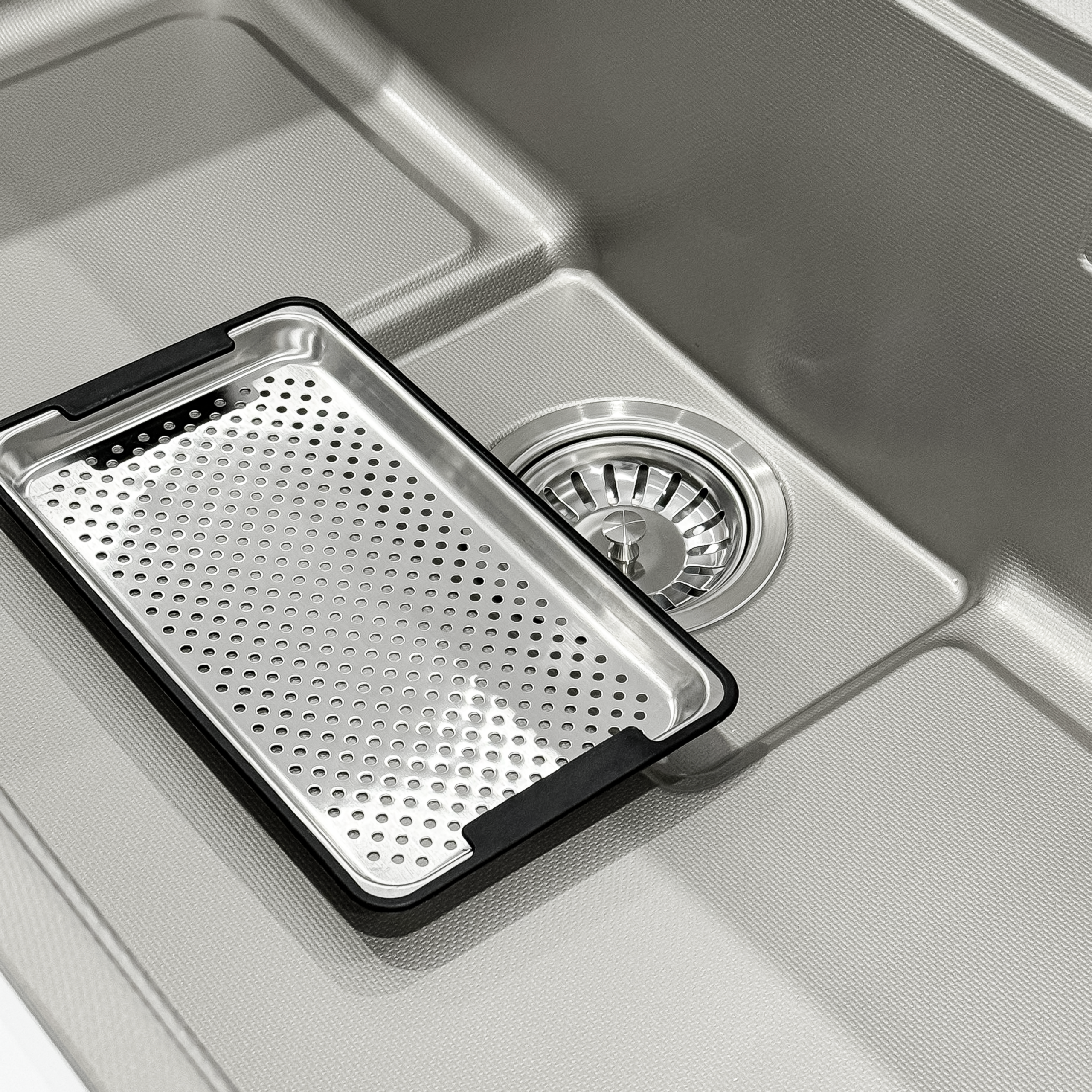 - Bề mặt lòng chậu áp dụng công nghệ Linen (vân hoa gạo) chống xước;